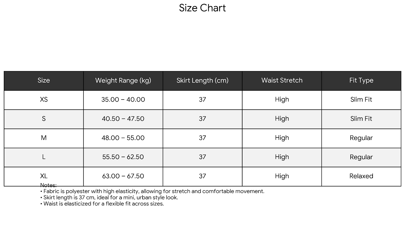 This skirt features high elasticity, ensuring a comfortable fit that moves with you throughout the day, whether you’re heading to work, a casual outing, or a weekend adventure.