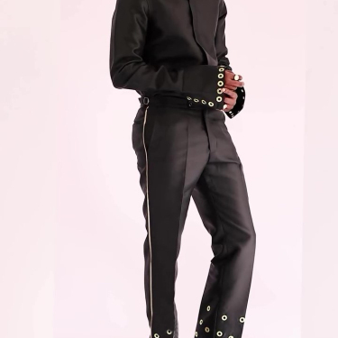 Make a bold style statement with this sleek black formal ensemble designed for men who appreciate modern elegance with distinctive details.