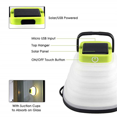 Equipped with dual charging options, the collapsible solar powered camping lantern uses an integrated solar panel for eco-friendly charging and a USB port for quick recharging in just about an hour.