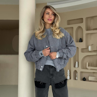 Chic Minimalist Design: Featuring a clean, solid color look in light grey and dark grey, this crop jacket exudes timeless elegance while keeping a modern, trendy vibe.