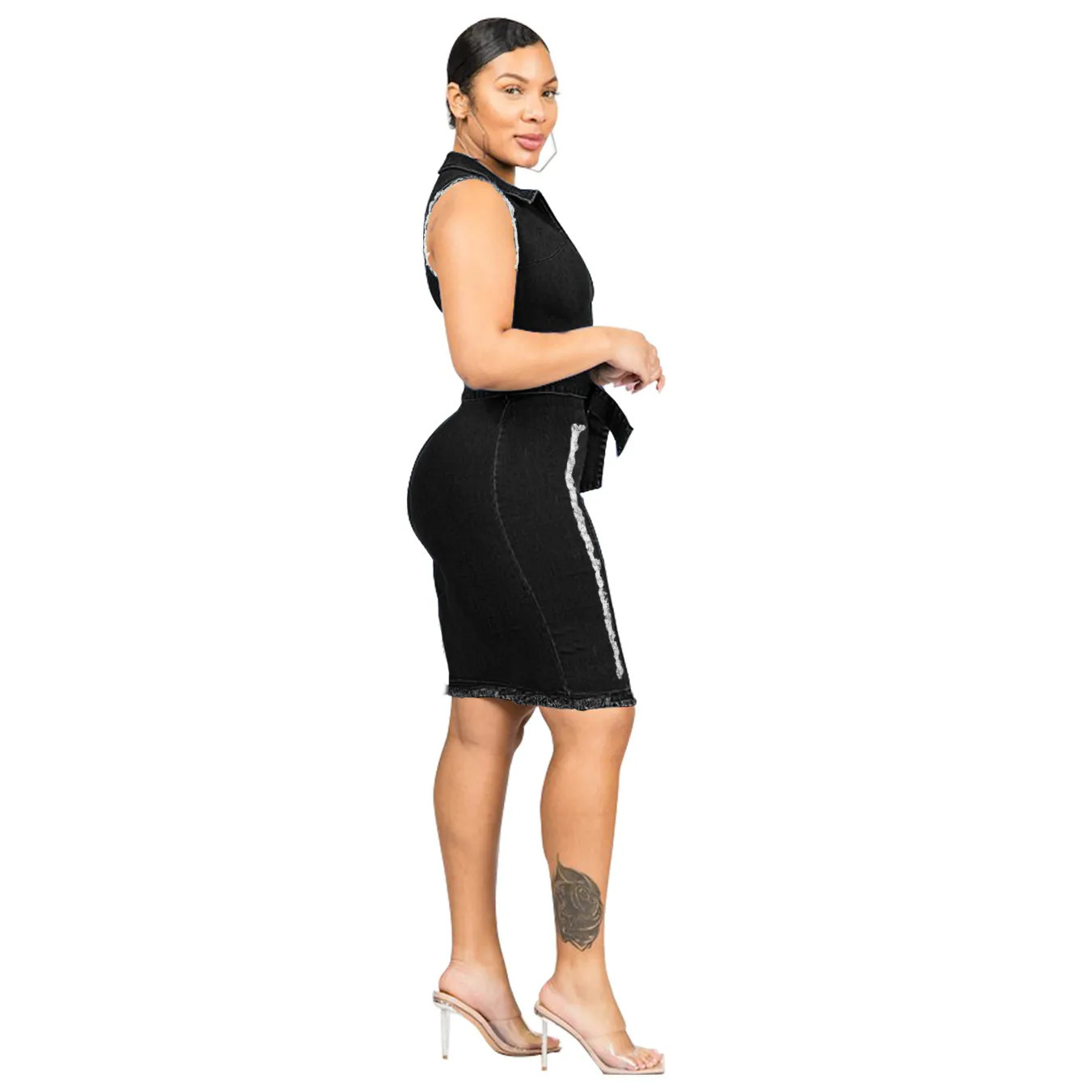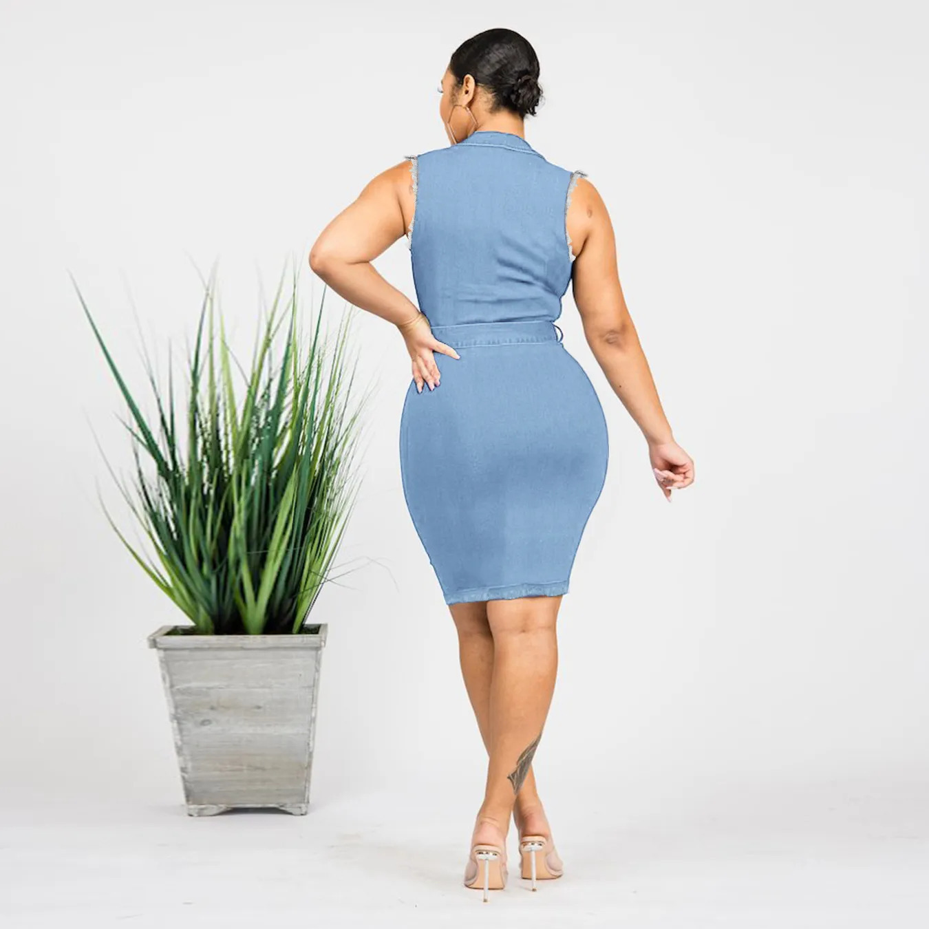 Step out in confidence and style with this denim bodycon dress — a perfect blend of street fashion and modern elegance.