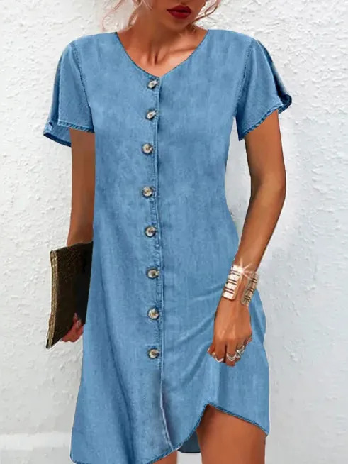 Embrace effortless elegance with this denim knee length dress, designed for women who love comfort and casual charm.