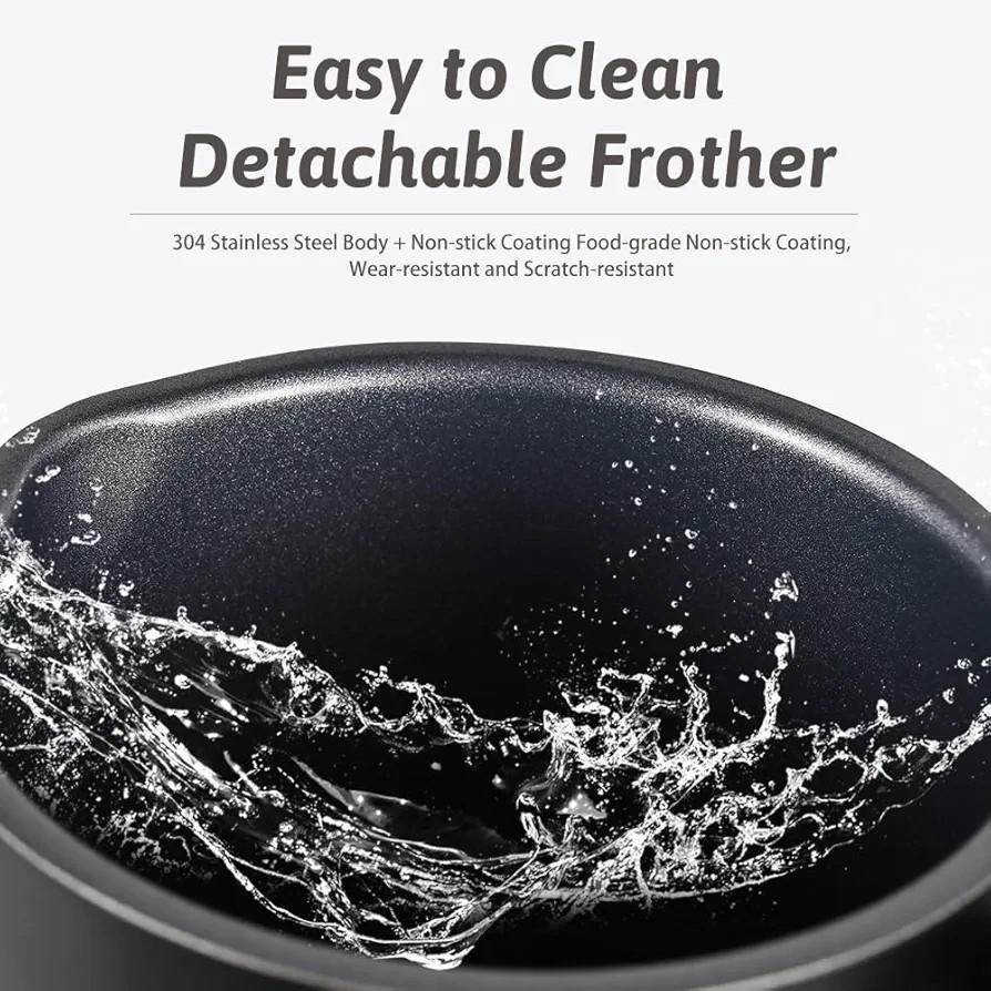 Crafted with a 304 stainless steel inner liner, the frother ensures durability and easy cleaning thanks to its non-stick interior.