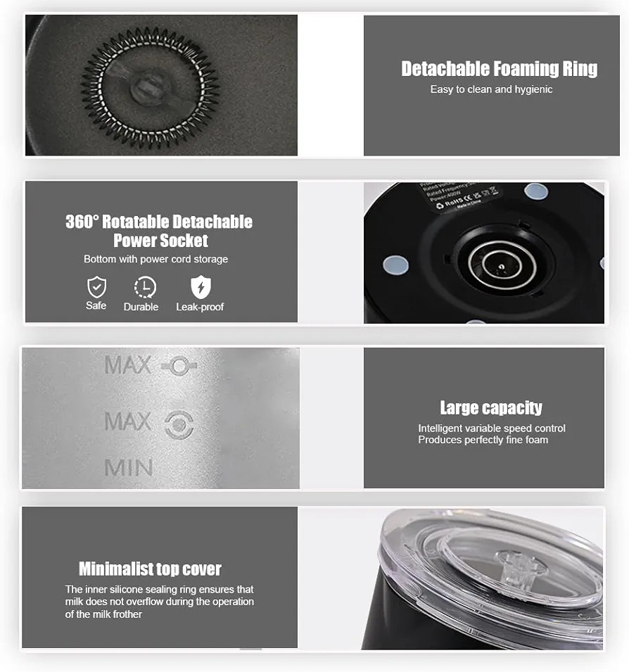 Enjoy café-style beverages anytime with your electric milk frother, the perfect addition to your morning routine or coffee breaks.