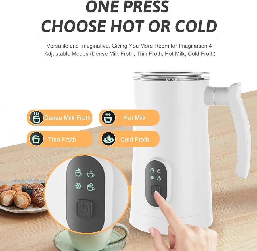 This versatile 4-in-1 appliance can froth milk hot or cold, heat milk, and prepare rich foam for lattes, cappuccinos, or iced coffees—perfect for coffee lovers who want barista-style drinks without leaving home.