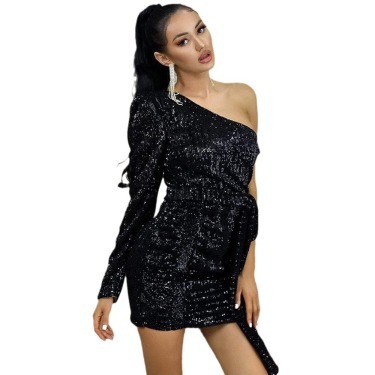 Elevate your wardrobe with this eye-catching sequined one shoulder dress — the ultimate choice for glamorous and unforgettable style.