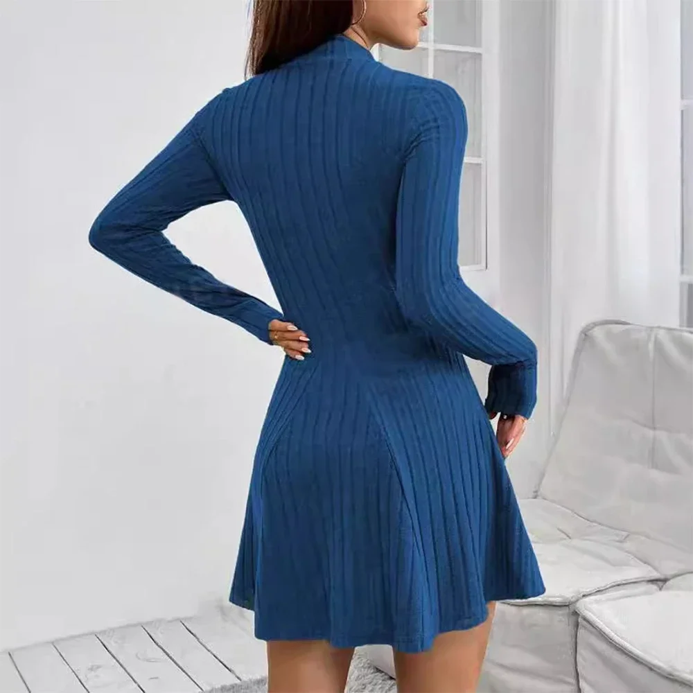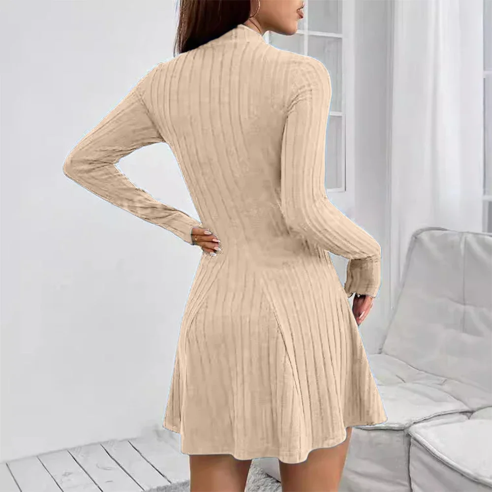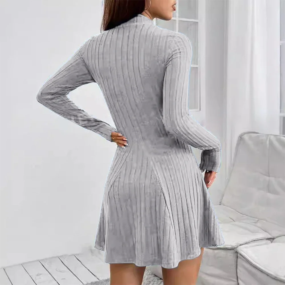 Elegant Short Sweater Dress for Women – Slim Fit with Long Sleeves and Round Neck
