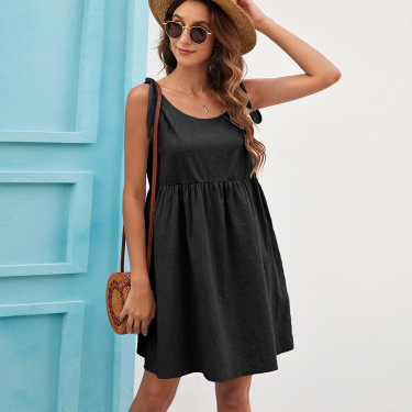 Featuring a round neck and sleeveless design, this smock dress is airy and perfect for layering with a light jacket or cardigan.