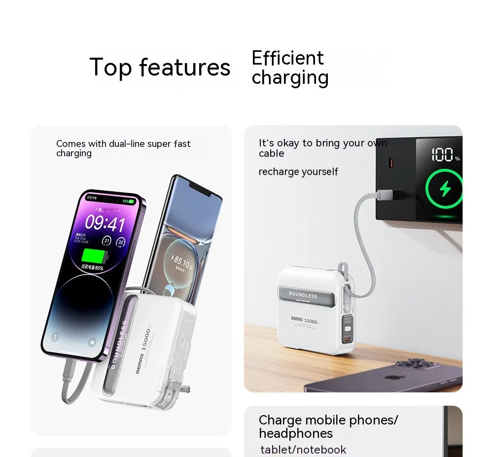 Engineered for universal compatibility, this power bank works seamlessly with iPhones, Android devices, and laptops that support Type-C charging.