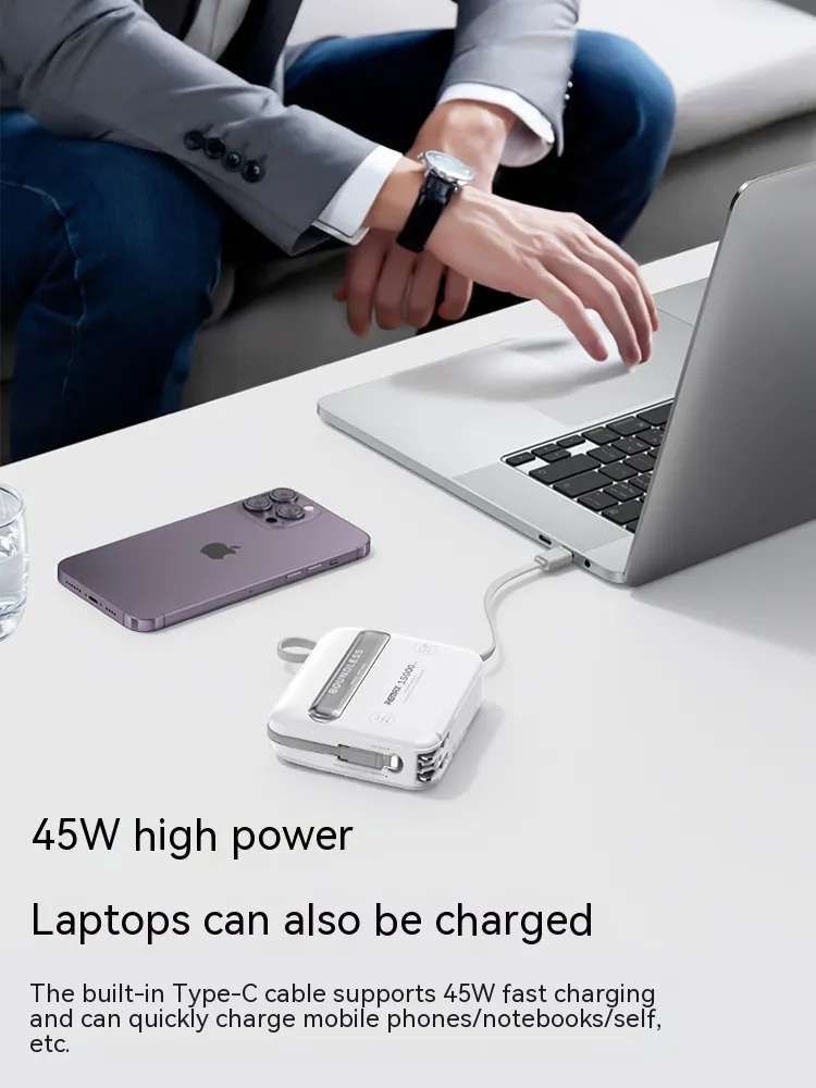 Designed for high-performance charging, this fast charging power bank supports up to 45W output, allowing you to quickly recharge compatible laptops, smartphones, and other USB-C devices.