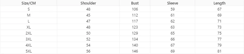 Sizes: S, M, L, XL, XXL, 3XL