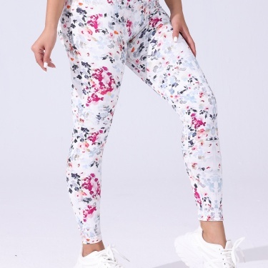 Floral Leggings – High Waist Peach Hip Fitness Activewear for Women