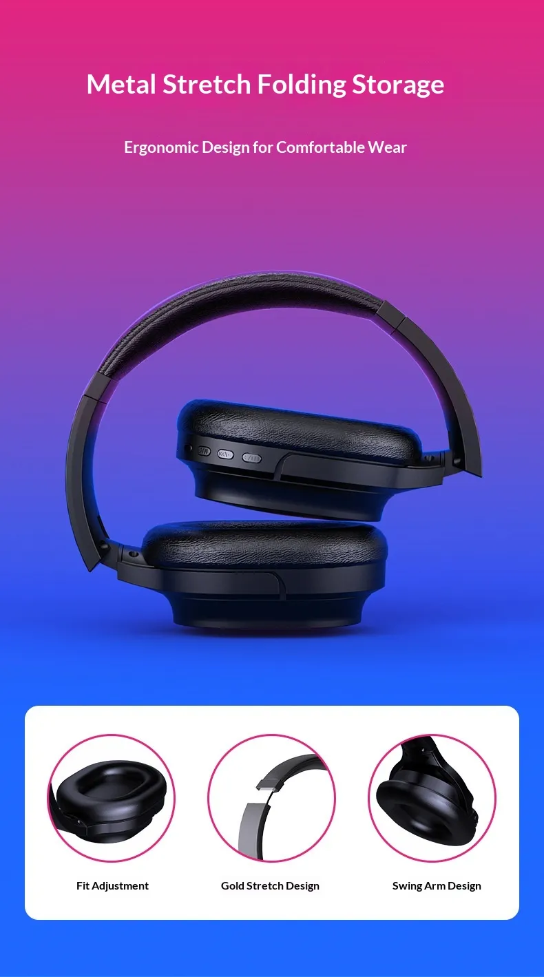 The foldable bluetooth headphones with microphone feature a durable construction with PVC headphone cable components and high-quality materials built for daily use.