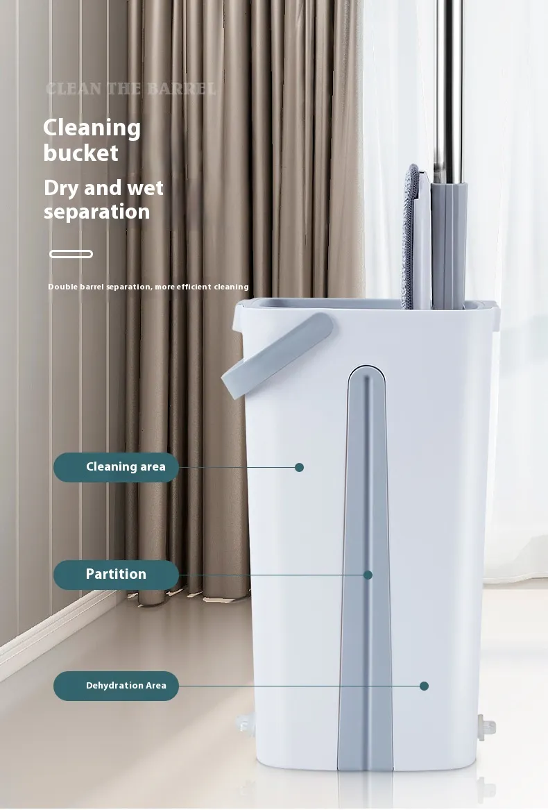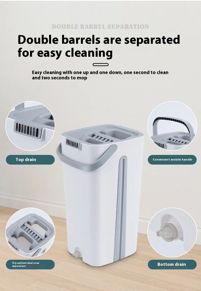Upgrade your cleaning routine with this efficient and hygienic hands free flat mop and bucket set, designed to make floor cleaning easier without ever touching dirty water.