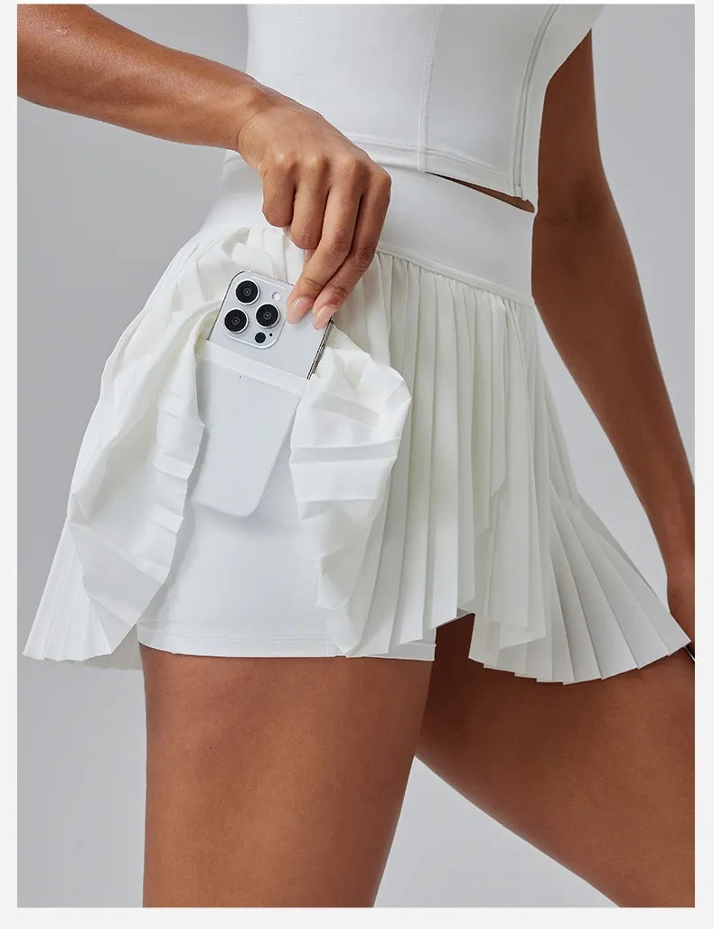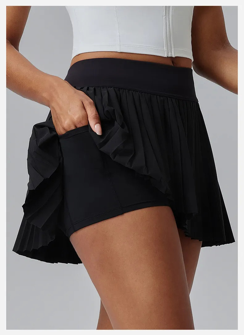 The high waist pleated skort is the perfect combination of style, comfort, and practicality, designed for women who want the chic look of a skirt with the confidence of built-in shorts.