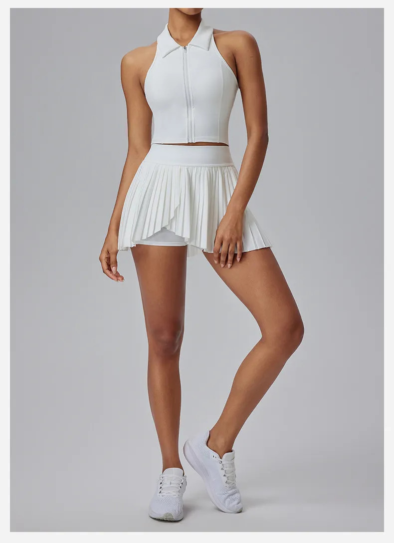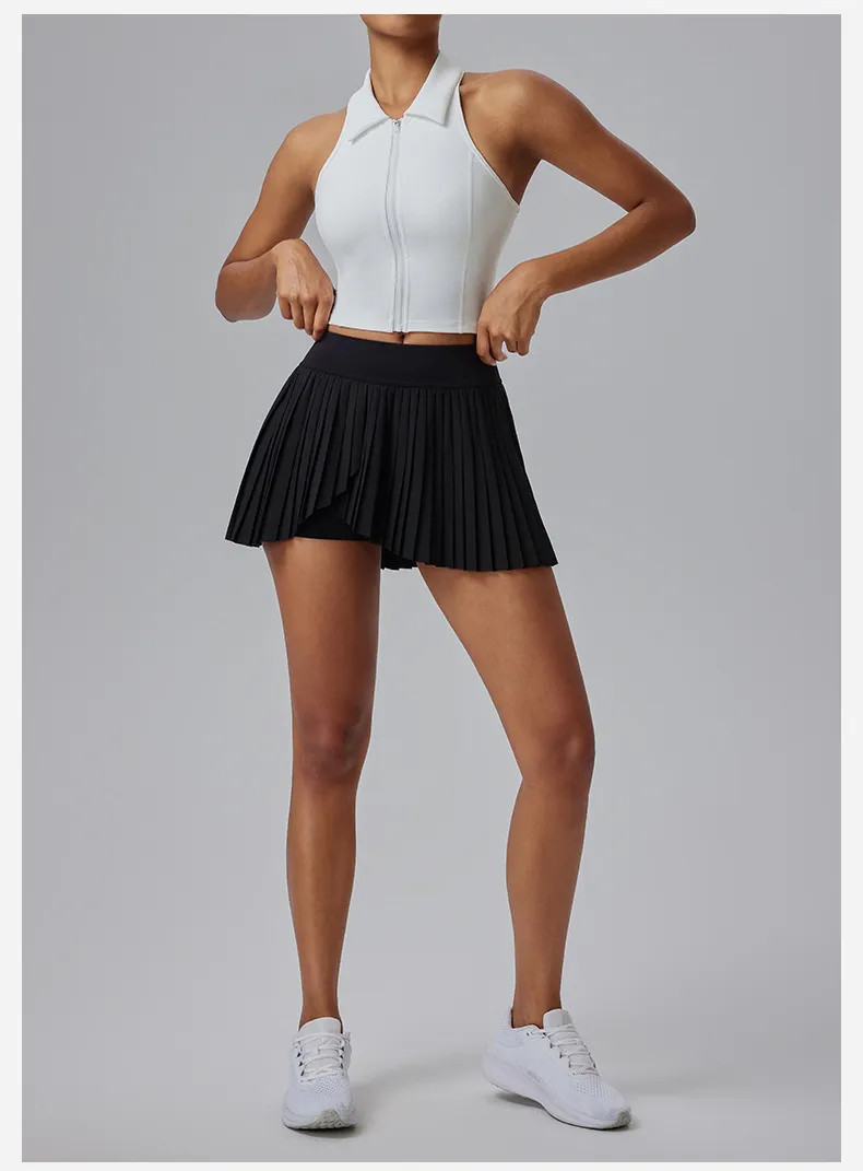 Upgrade your wardrobe with the high waist pleated skort, a stylish and versatile piece that blends feminine fashion with everyday comfort.