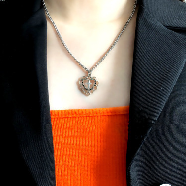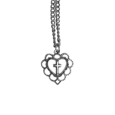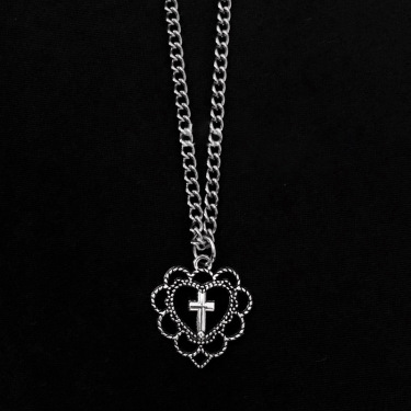 Combining a symbolic heart and cross design with a sleek hollow structure, this necklace creates a unique piece that stands out in both casual and alternative style outfits.