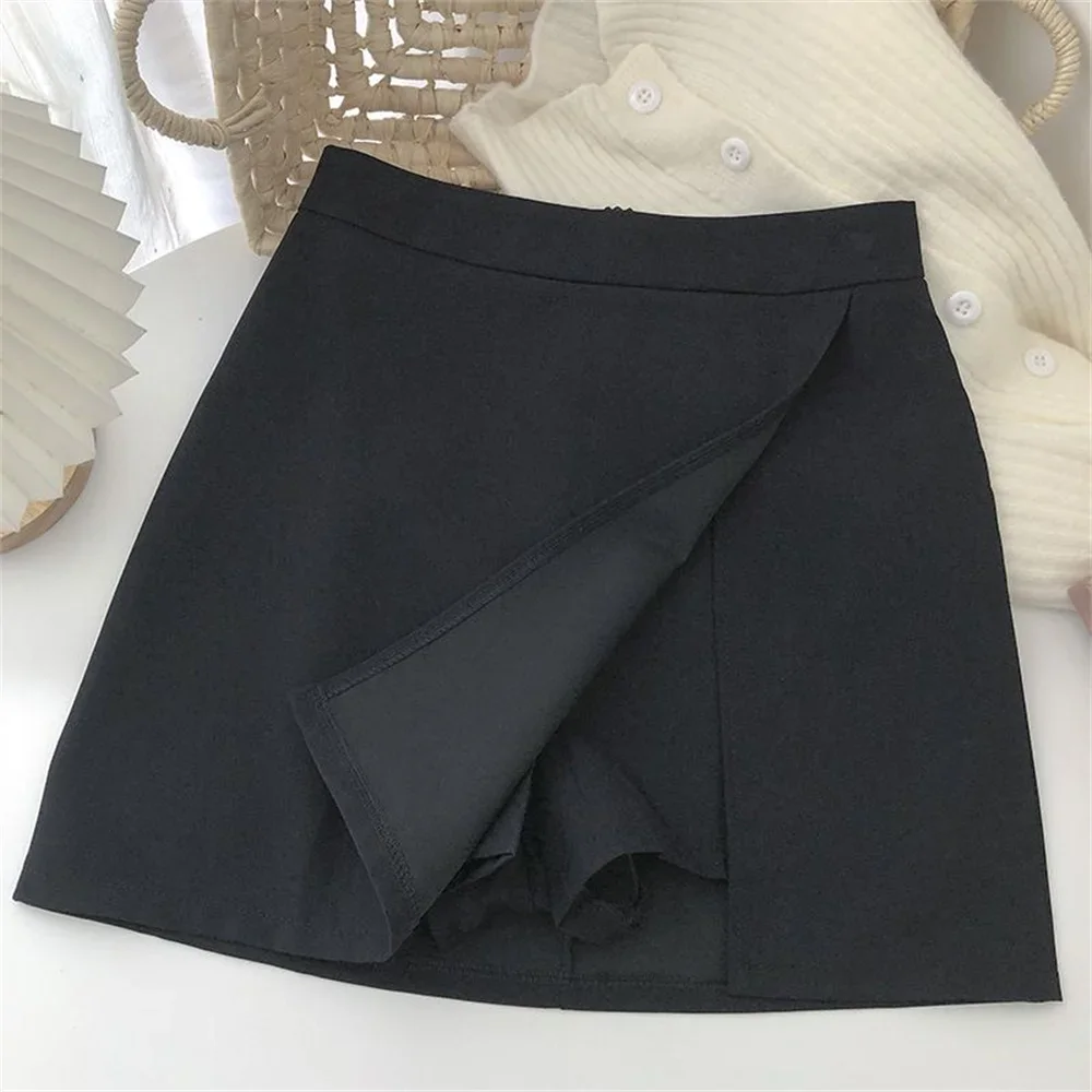 Embrace timeless style and modern comfort with our irregular mini skirt with shorts.