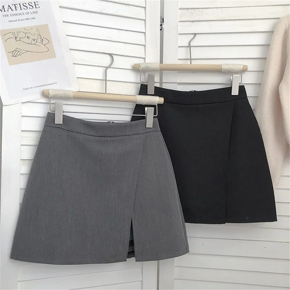 Designed for the fashion-forward woman, this skirt combines the elegance of a high-waisted A-line silhouette with the practicality of built-in shorts.