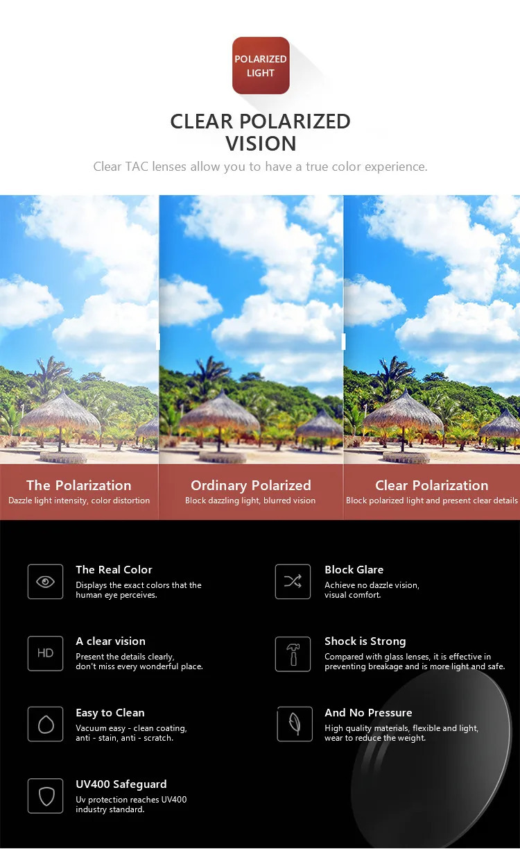UV400 Protection: Lenses block 100% of harmful UVA and UVB rays, keeping your eyes safe in bright sunlight.