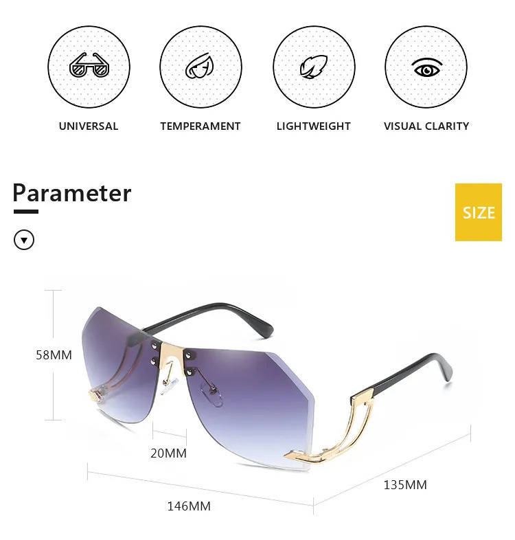 Make a bold fashion statement with our rimless sunglasses designed for women who love style and functionality.