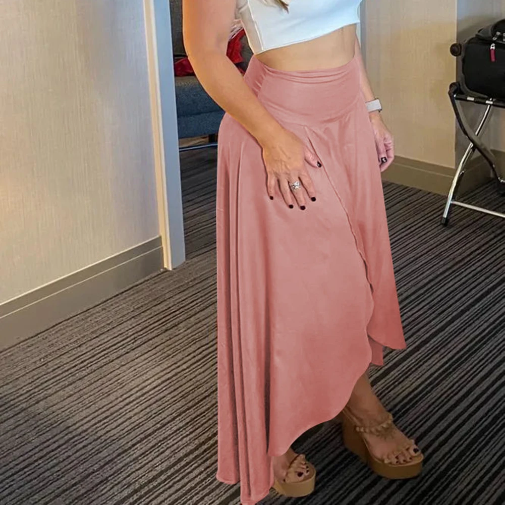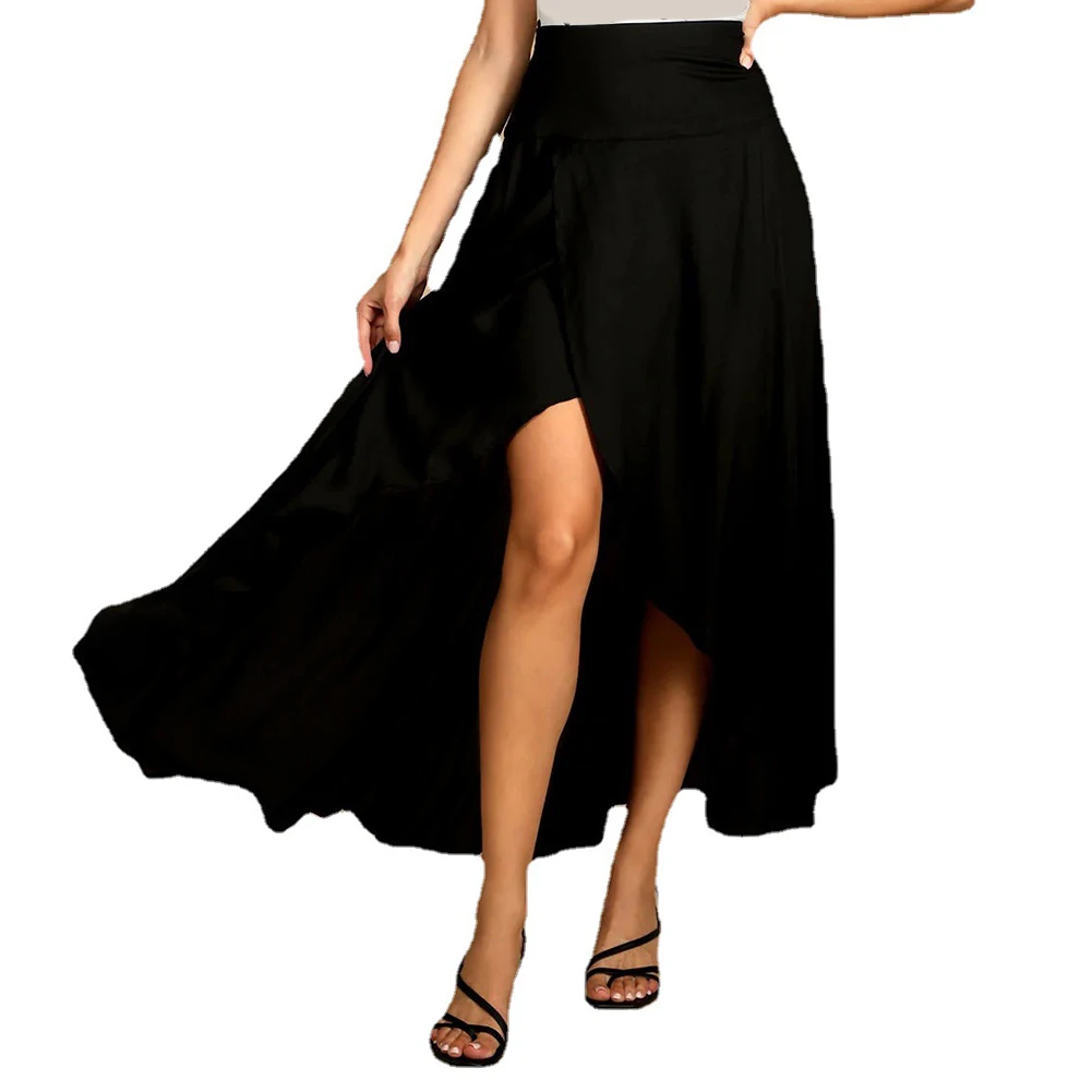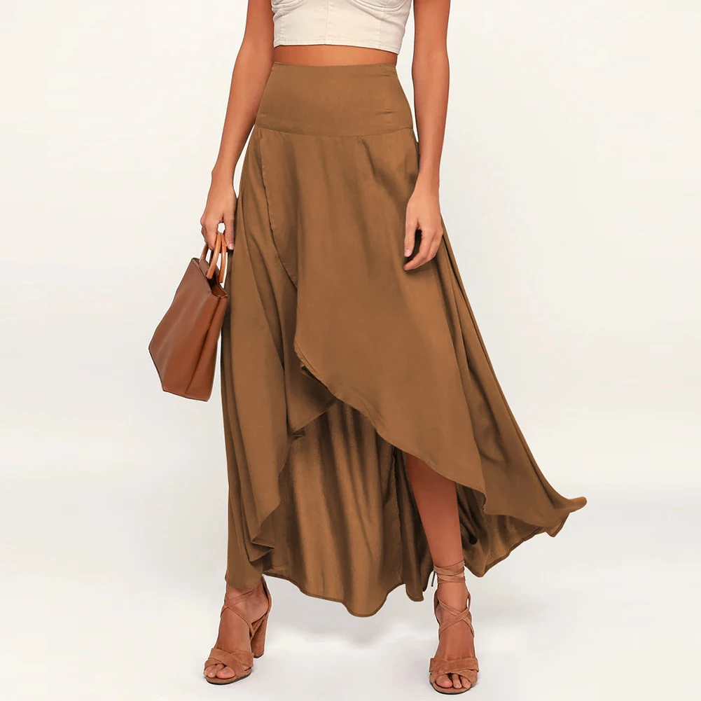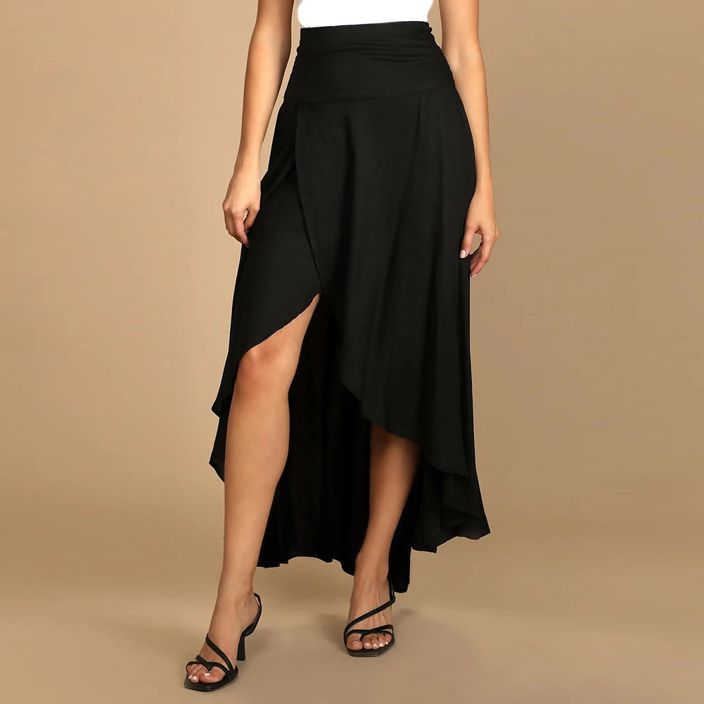 Irregular Skirt Design: Features a chic, asymmetrical hem that sets a stylish and fashion-forward tone for casual or dressy ensembles.