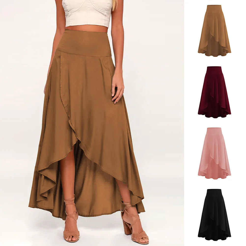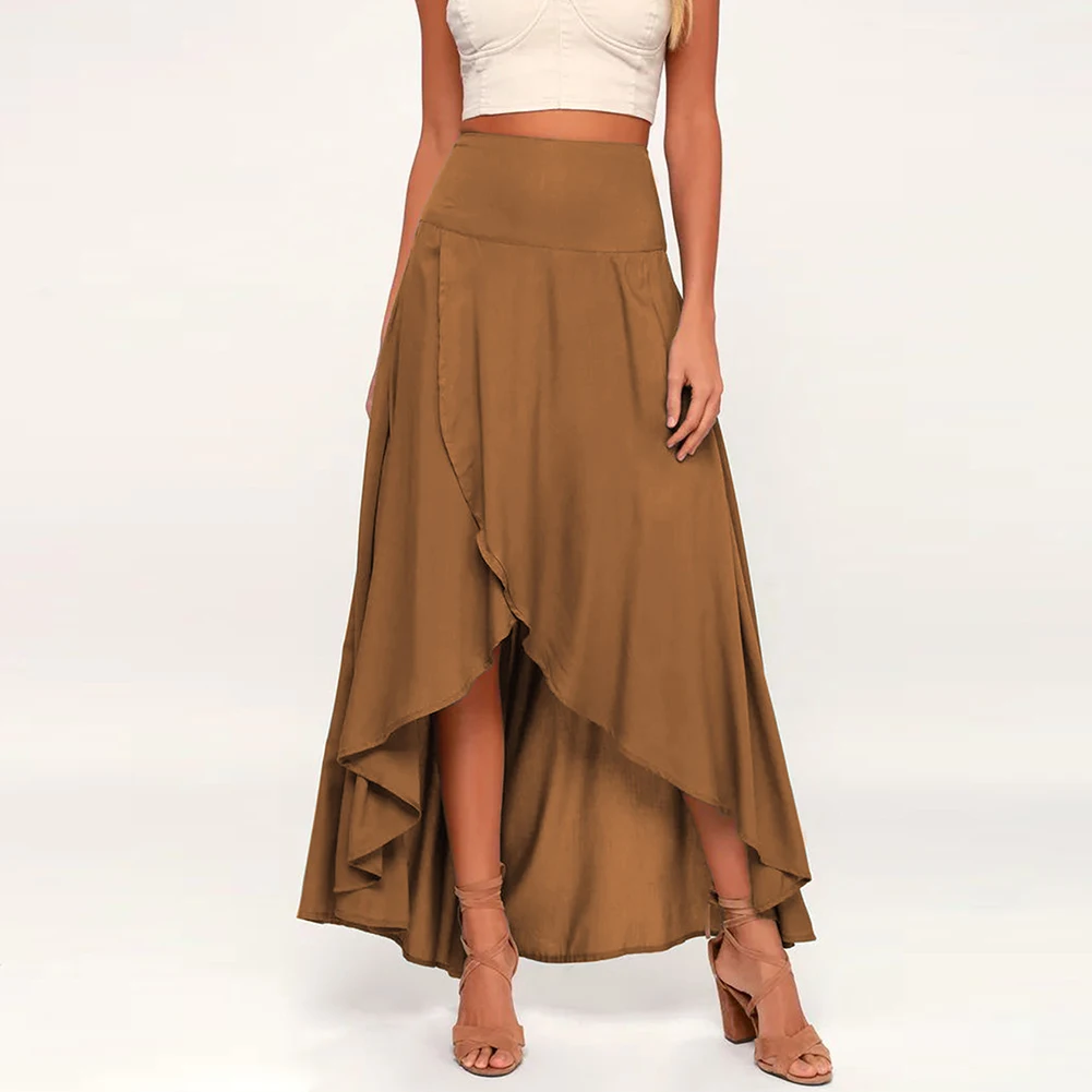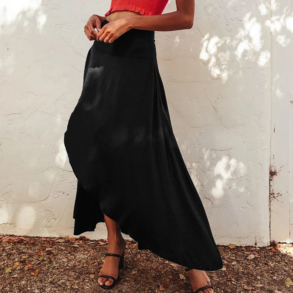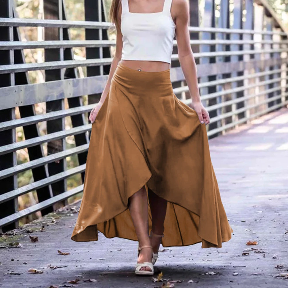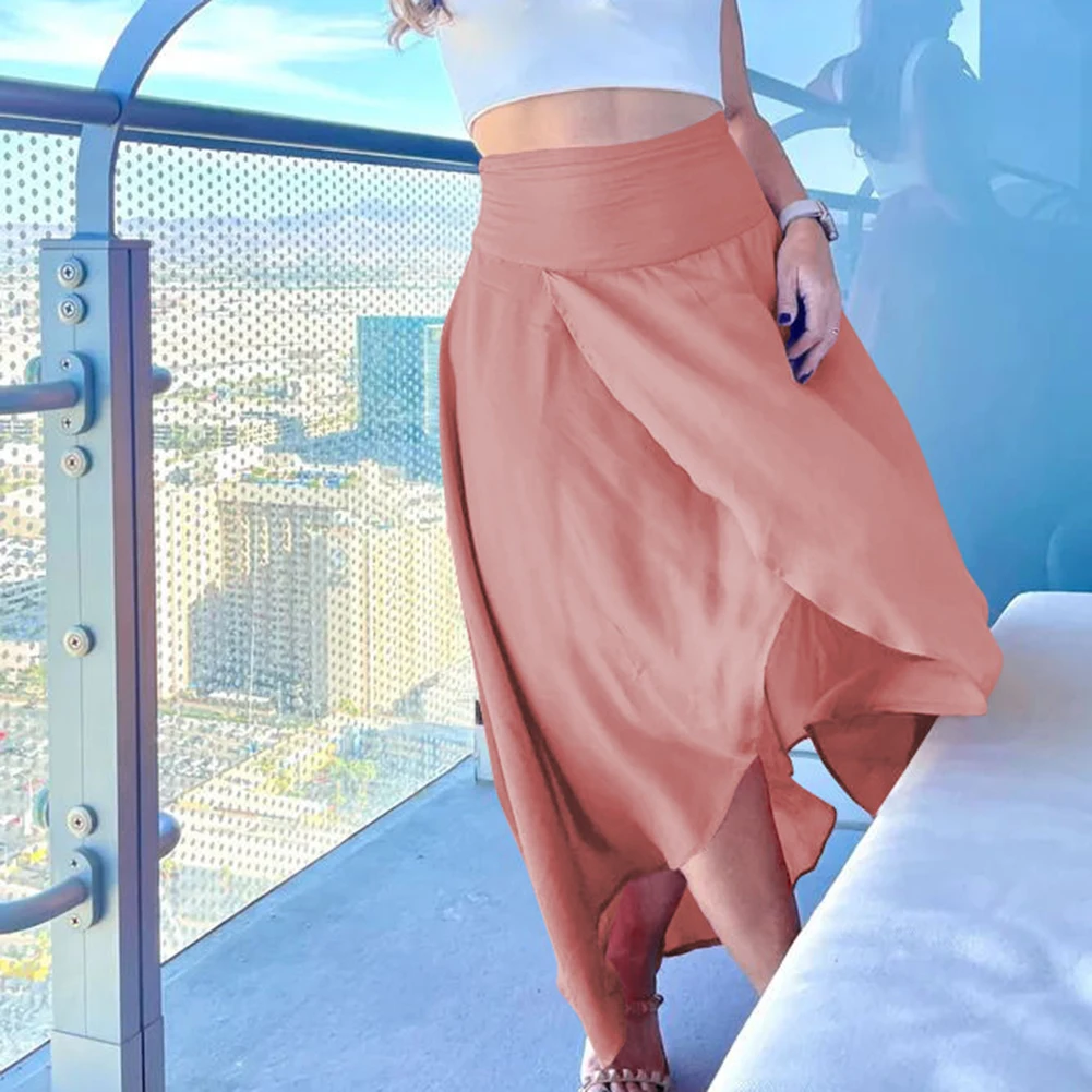 Irregular Skirt Design: Features a chic, asymmetrical hem that sets a stylish and fashion-forward tone for casual or dressy ensembles.
