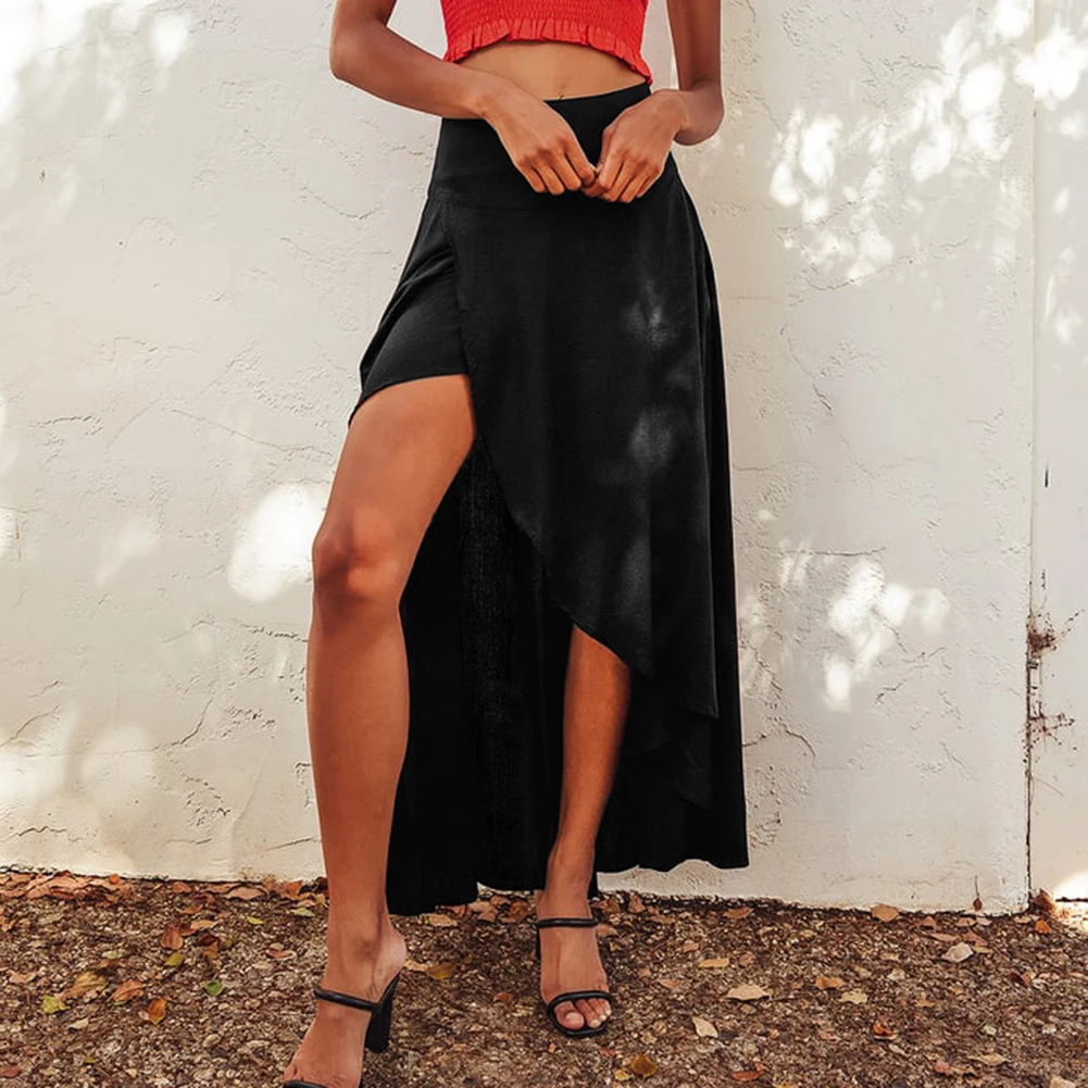 Its asymmetrical hem adds visual intrigue, while the high-waist silhouette accentuates your shape.