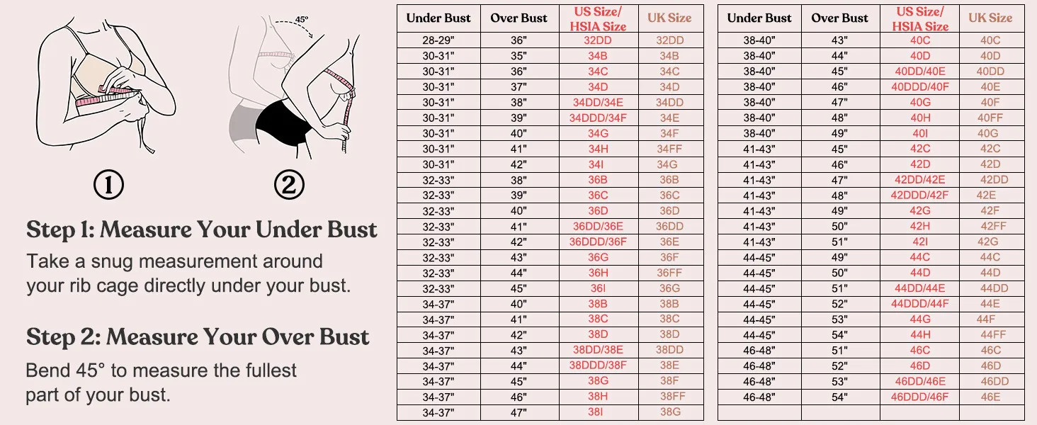 Extensive Size Range: Fits a wide variety of body types from 34C to 48I.
