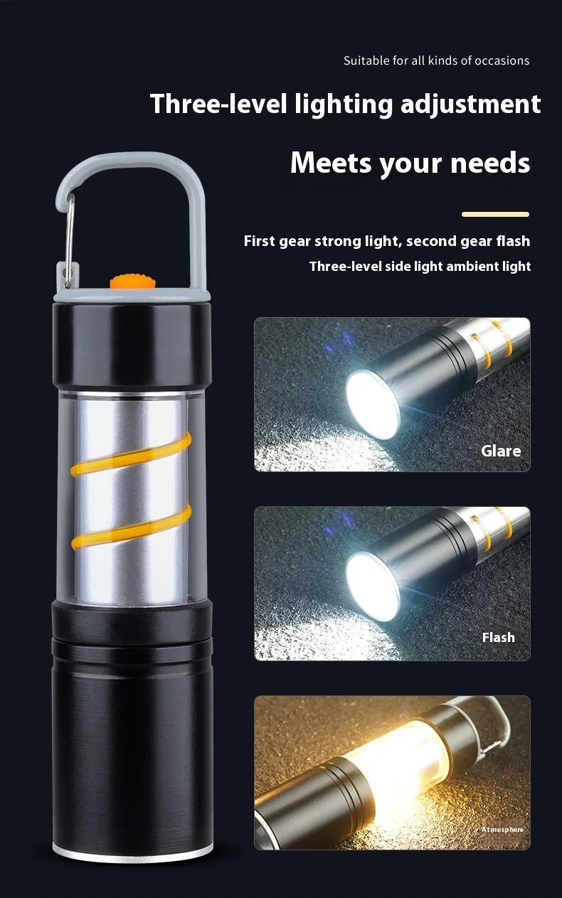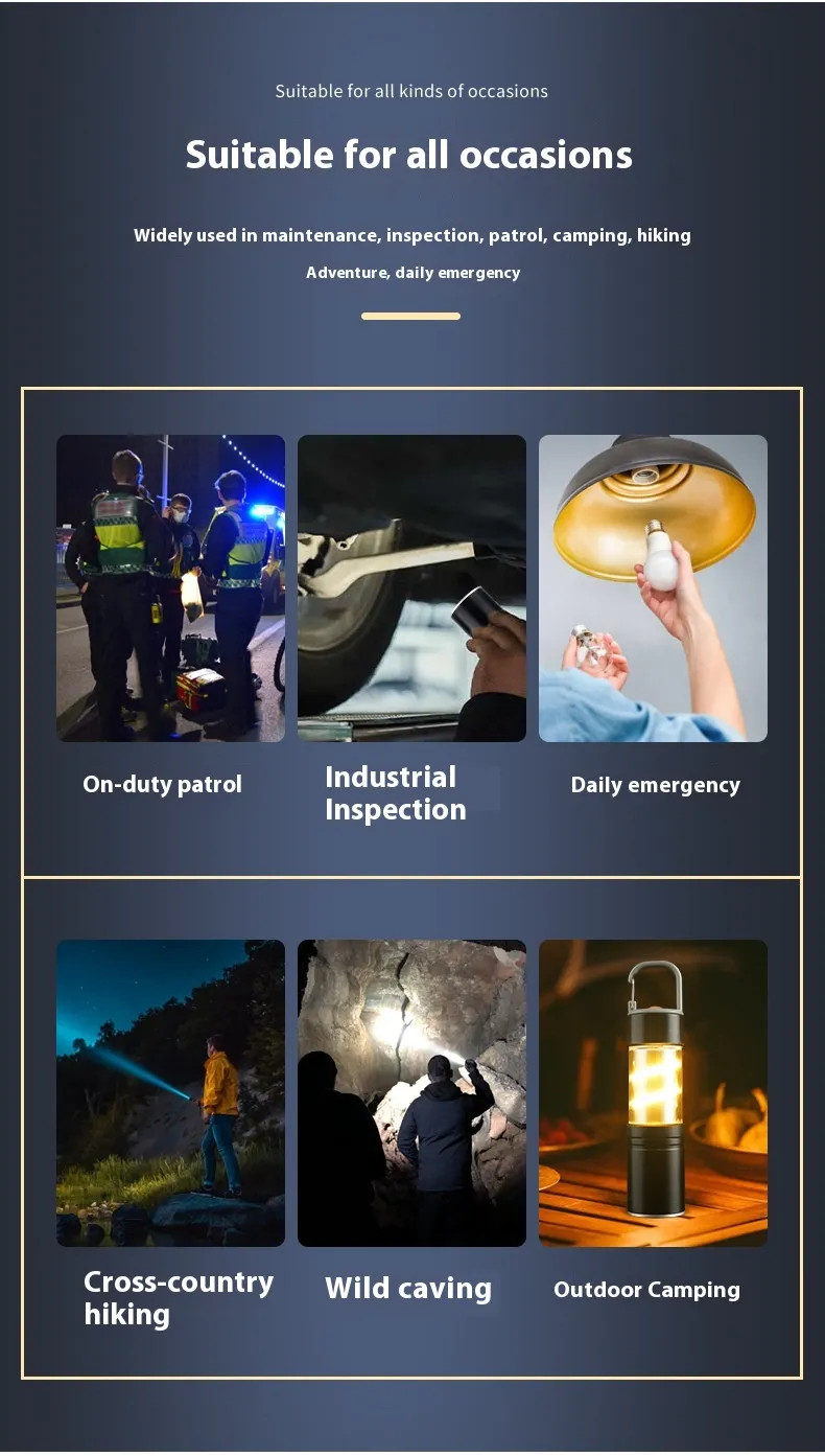 Crafted from durable aluminum alloy and high-quality ABS plastic, the LED camping flashlight is built to withstand rugged environments while remaining ultra-lightweight and easy to carry.