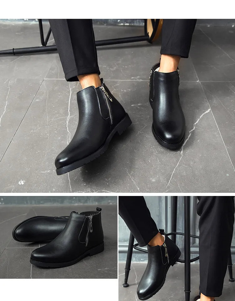 Step into refined comfort with men’s black leather ankle boots designed for modern business and formal wear.