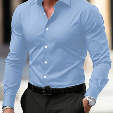 Available in a wide range of elegant colors—navy blue, dark green, black, white, light grey, wine red, lead grey, and sky blue—this men’s dress shirt makes it easy to match your professional style.