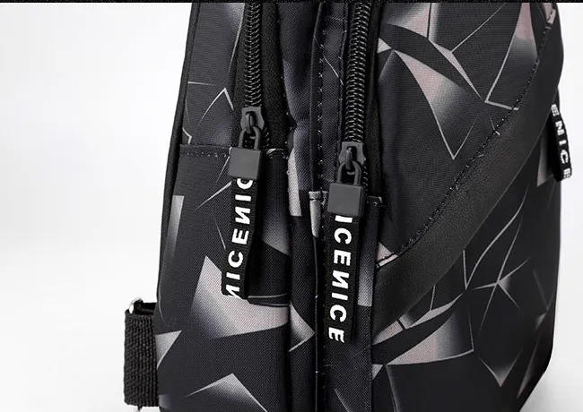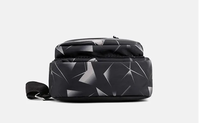 Featuring a bold geometric pattern, this sleek backpack adds a contemporary edge to any casual outfit while keeping your essentials organized and within easy reach.