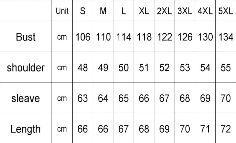 Sizes: S, M, L, XL, 2XL, 3XL, 4XL, 5XL, 6XL