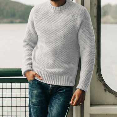 Enhance your casual wardrobe with this Men’s Round Neck Sweater – Knitted Solid Color Pullover.