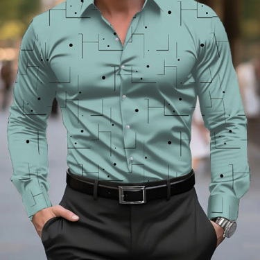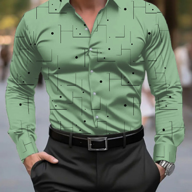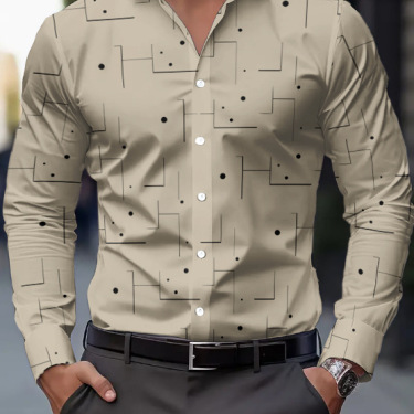 Featuring a slim-fit silhouette and elegant digital printing, the shirt with geometrical pattern creates a sharp yet relaxed look that works effortlessly for casual outings, social gatherings, or smart-casual occasions.