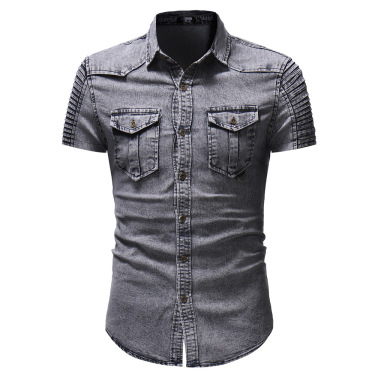 Distinctive details such as pleated shoulders and buttoned chest pockets give this short sleeve denim shirt a unique and fashionable edge while adding practical functionality.