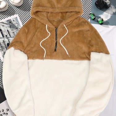 Men’s Teddy Fleece Hoodie – 2 Tone Half Zipper Design