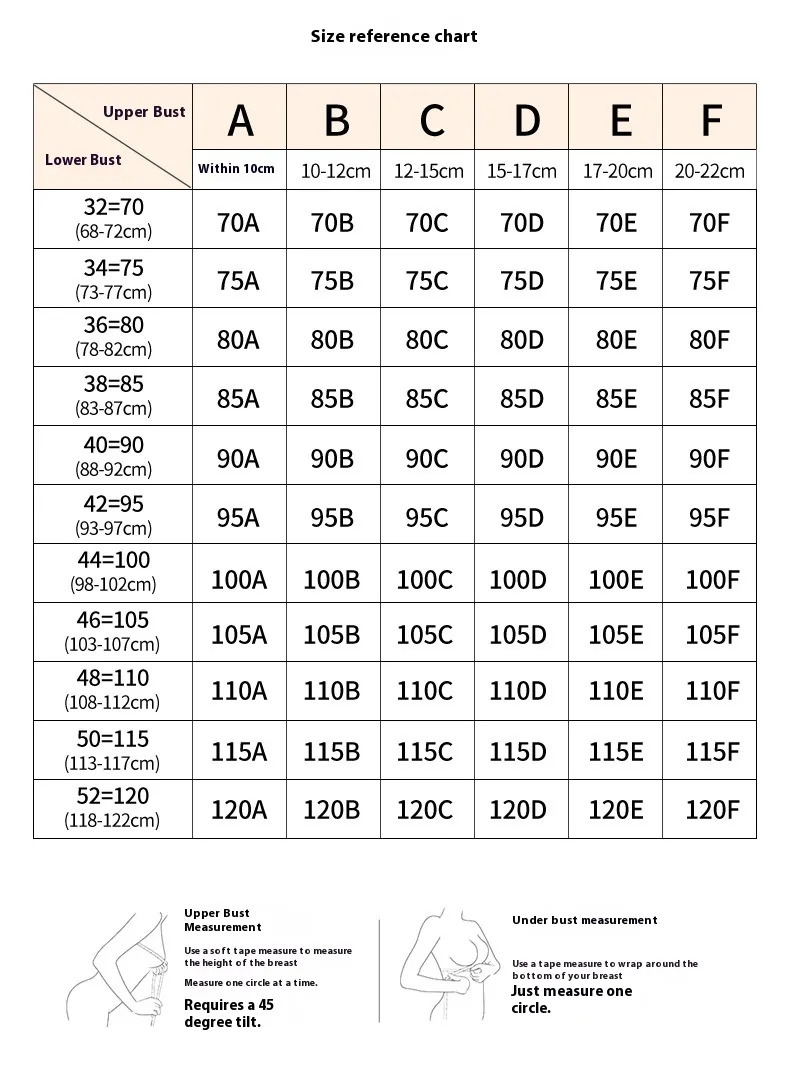 Size-Inclusive Fit: Available in cup sizes from 95C to 110E, and band sizes 42 (95) to 48 (110) – designed to fit and flatter fuller busts.