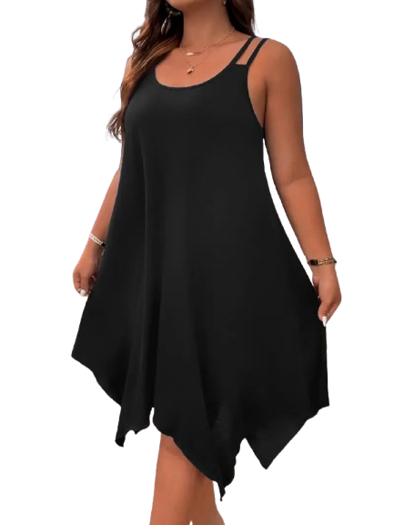 Plus Size Sleeveless Dress – Casual Strappy Midi with Asymmetrical Hem