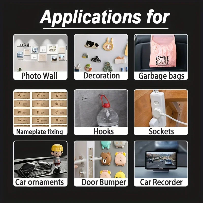 Transparent & Residue-Free: Invisible on most surfaces and easy to peel off without leaving marks—perfect for rental walls, glass, tile, or painted surfaces.