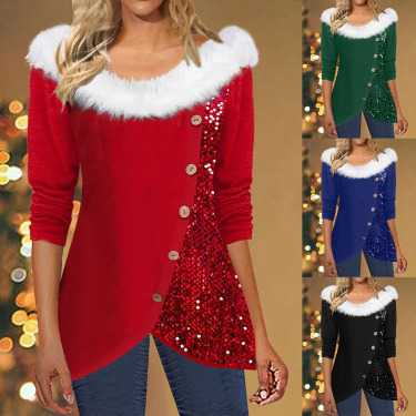 Make your holiday season shine with our sequined christmas top, a festive blouse designed to add glamour, comfort, and holiday cheer to every moment.