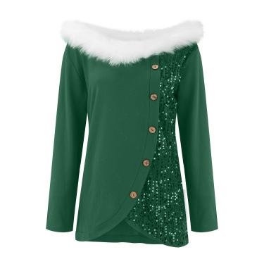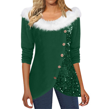 Crafted with shimmering sequins and finished with a luxurious faux fur trim, this top delivers the perfect blend of elegance and festive charm—ideal for Christmas parties, family gatherings, and joyful winter nights.