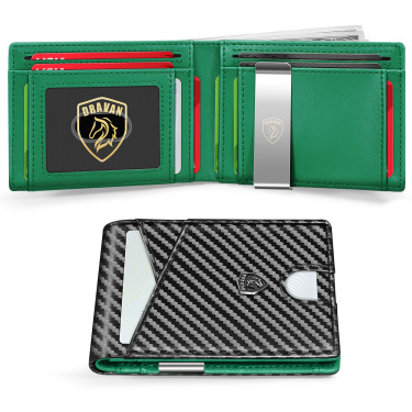 Despite its compact design, the wallet offers ample capacity with space for up to 12 credit cards, including a convenient ID window for quick access.