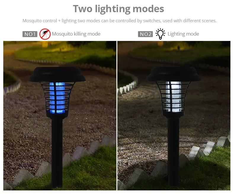The durable plastic construction and weather-resistant design make the solar mosquito killer lamp ideal for outdoor use in all conditions.