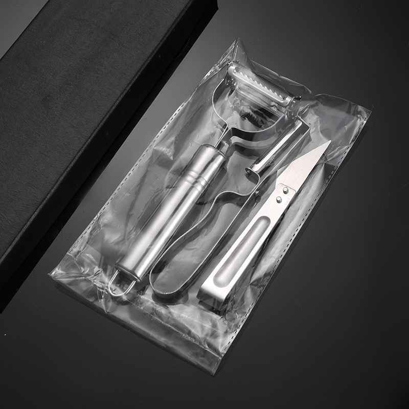 This multifunctional peeler features a straight blade, serrated edge, and julienne cutter—perfect for peeling, slicing, grating, and creating decorative ribbons in seconds.