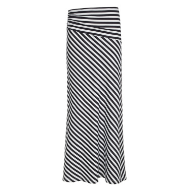 Trendy striped maxi skirt featuring bold diagonal stripes for a slimming, eye-catching look