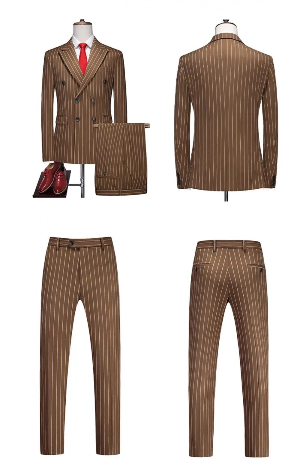 Crafted from a durable synthetic fiber blend with enhanced thickness, this striped suit offers a structured drape and premium feel that holds its shape beautifully.