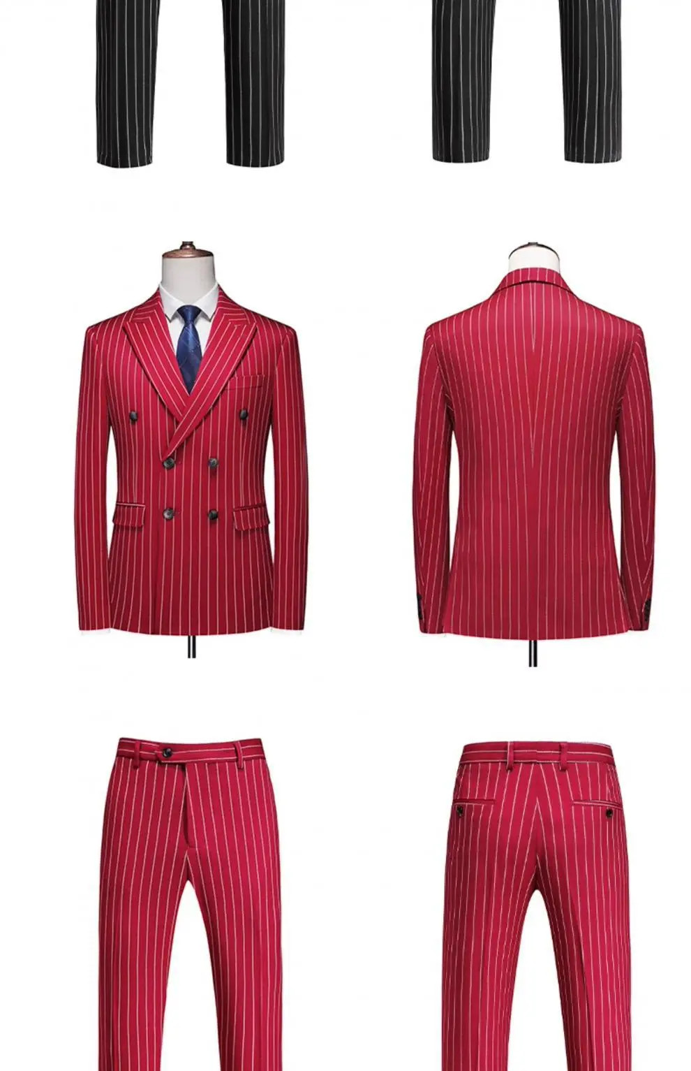Make a bold, confident statement with this fashion-forward striped suit designed to turn heads at weddings and special occasions.