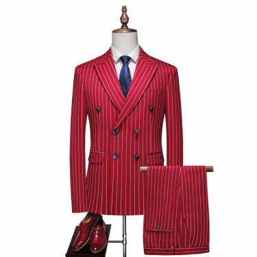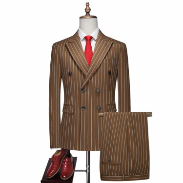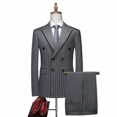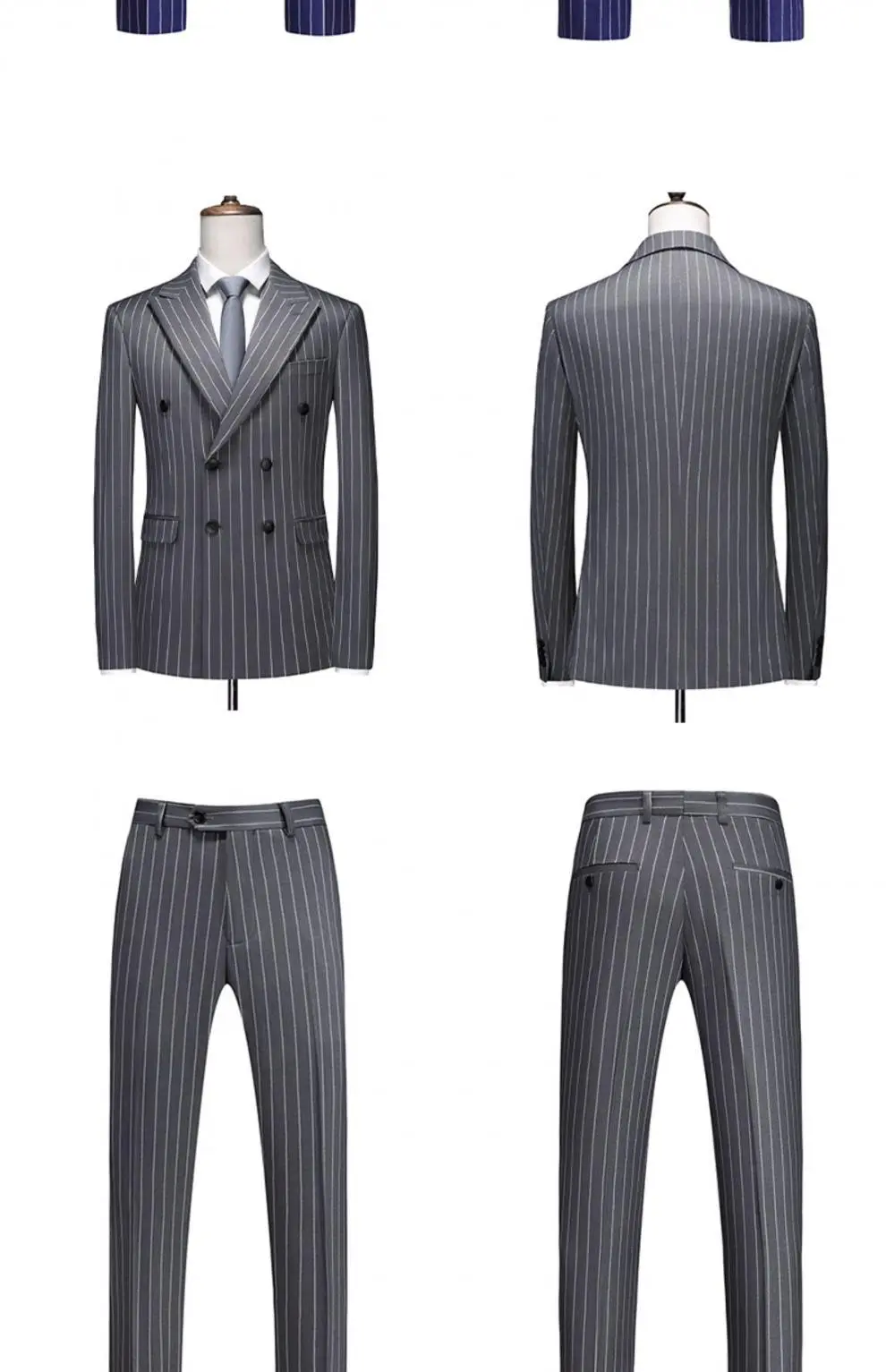 Crafted from a durable synthetic fiber blend with enhanced thickness, this striped suit offers a structured drape and premium feel that holds its shape beautifully.